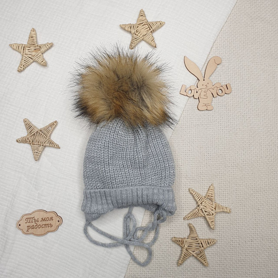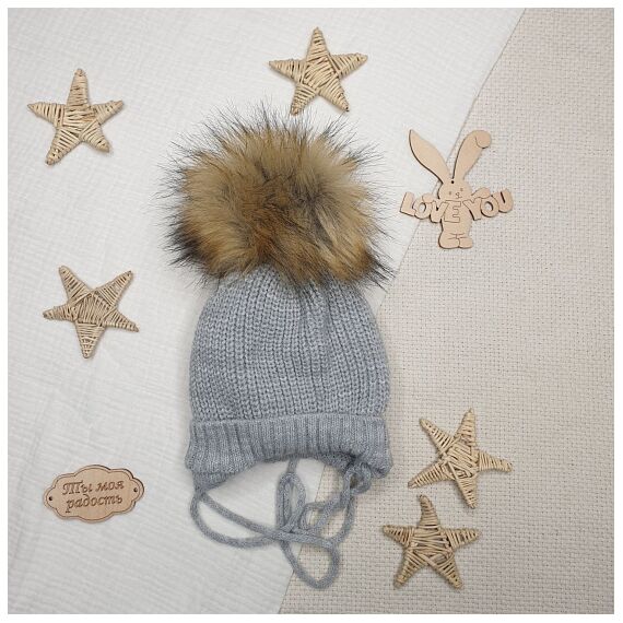 Шапочка вязаная с помпоном серая р 38-40