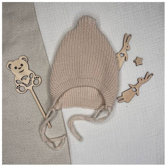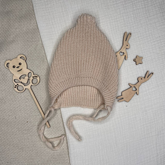 Вязаная шапочка на завязках. Бежевая р 0-3 мес