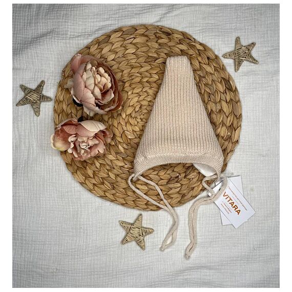 Вязаная шапочка с хлопковым подкладом. Бежевая р 38-40