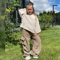 Блузка для девочки Изделие выполнено в модном свободном крое. Длинный рукав на манжете. Выполнена из приятной ткани лапша кашемир с широким рубчиком. На спине небольшая пуговка.