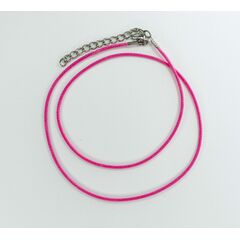Шнурок из прорезиненного текстиля ярко-розового цвета, длина-45,0+5см. Замок- карабин из ювелирного сплава серого цвета.