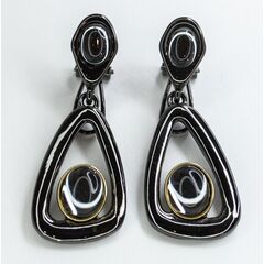 Серьги из гипоаллергенного ювелирного сплава черного цвета. Без вставок. Покрытие эмалью белого цвета. Итальянский замок ( швенза-1,2см и застежка- клипса). Высота серег-5см, ширина-3,5см.