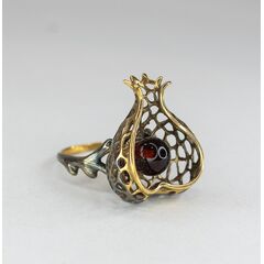Кольцо женское из гипоаллергенной бронзы с позолотой и родием. Вставка- нат.янтарь коричневого цвета в форме шарика ( размер камня- 0,5/0,5см). Высота кольца- 3,0см, ширина-2,0см. Размер- 19,0.