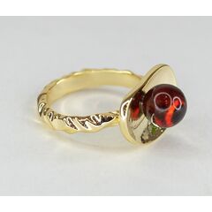 Кольцо женское из гипоаллергенного сплава с позолотой. Вставка- нат.янтарь коричневого цвета в форме шарика ( размер камня-0,5/0,5см). Высота кольца- 2,0см, ширина-2,0см. кольцо разъёмное, размер- 17,0-20,0.