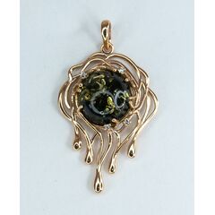 Подвеска женская из гипоаллергенного сплава с позолотой. Вставка- нат.янтарь пятнистый зеленого цвета ( размер камня-1,0/1,0см). Высота подвески- 4,0см, ширина-3,0см.