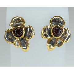 Серьги женские из гипоаллергенной бронзы с позолотой и родием. Вставка- нат.янтарь коньячного цвета в форме шарика ( размер камня- 0,5/0,5см) и фианит белого цвета. Высота серег- 2,0см, ширина-2,0см. Застежка- английская (штифт-1,0см).