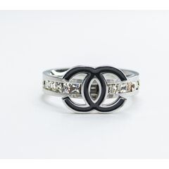 Кольцо из гипоаллергенного ювелирного сплава серого цвета. Вставка-ювелирное стекло, цвет- белый .Покрытие эмалью черного цвета. Высота кольца-1см, ширина-1,2см, размер-17,0.