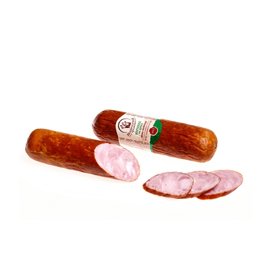 Полукопченое колбасное изделие изготавливается из нежнейшей телятины, говядины и свинины высшего сорта, поэтому продукт пользуется большим спросом среди настоящих гурманов. Продукт идеально подходит для приготовления бутербродов, пиццы, закусок и различных салатов.