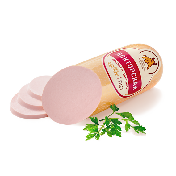 ГОСТовская вареная колбаса «Докторская» – одна из самых любимых вареных колбас россиян. Изготовлена из говядины и свинины. Ноты муската и кардамона подчеркивают мясной вкус, а молоко добавляет нежное послевкусие. Дымопроницаемая оболочка большого диаметра способствует созданию румяной корочки и привлекательного внешнего вида продукту.