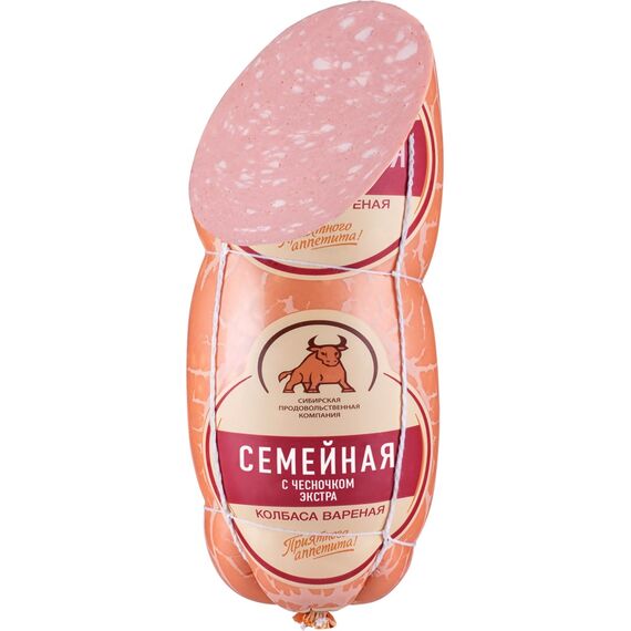 Колбаса вареная Семейная с чесночком Экстра ≈ 1кг