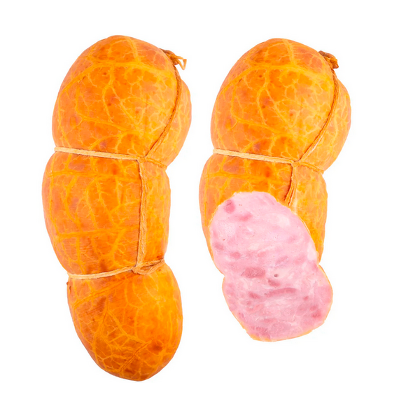 Варёные колбасы и ветчины прочно вошли в наш ежедневный рацион и стали гордостью "колбасной истории".Состав: свинина, вода питьевая, мясо окорочков цыплят-бройлеров, крахмал картофельный, соль йодированная, соевый белок, комплексная пищевая добавка для мясной продукции.