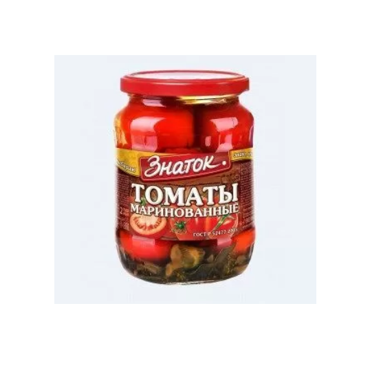 ЗНАТОК Томаты неочищенные в томатной заливкеВ приготовлении маринованных томатов используется свежее отечественное сырье, бережная пастеризация сохраняет все полезные вещества и превосходный вкус продукта.