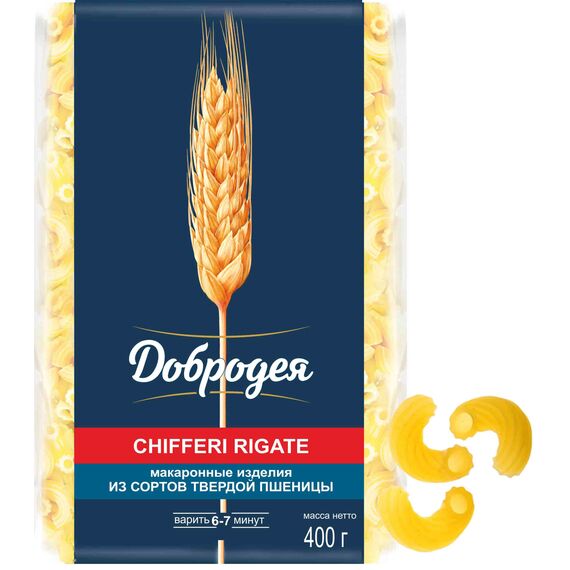 Киффери Ригате ТМ "Добродея" - трубчатая рифленая паста родом из Центральной Италии. Благодаря своему небольшому размеру традиционно используется для приготовления супов, а также прекрасно сочетается с простыми легкими соусами и заправками на основе сыра.