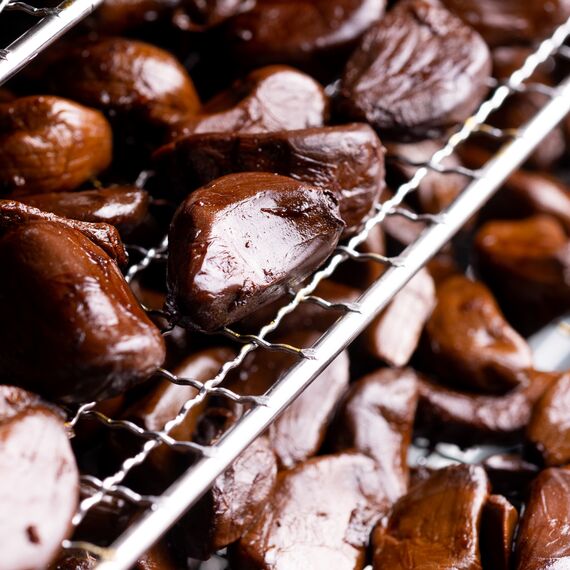 Мы разработали собственную технологию производства. В течение 30-45 дней в герметичной камере происходит особая ферментация отборных зубчиков чеснока. Выделяющийся сок циркулирует через конденсаторы, насыщаясь полезными веществами. На выходе мы получаем сразу два продукта: собственно черный чеснок и жидкий концентрат.