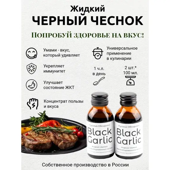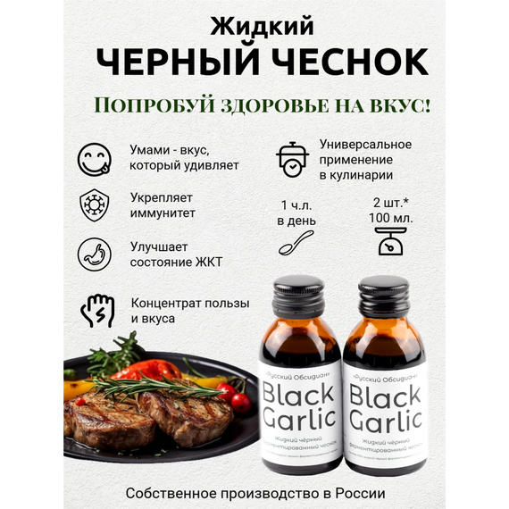 Жидкий чёрный ферментированный чеснок Black Garlic, две бутылки по 100 мл.