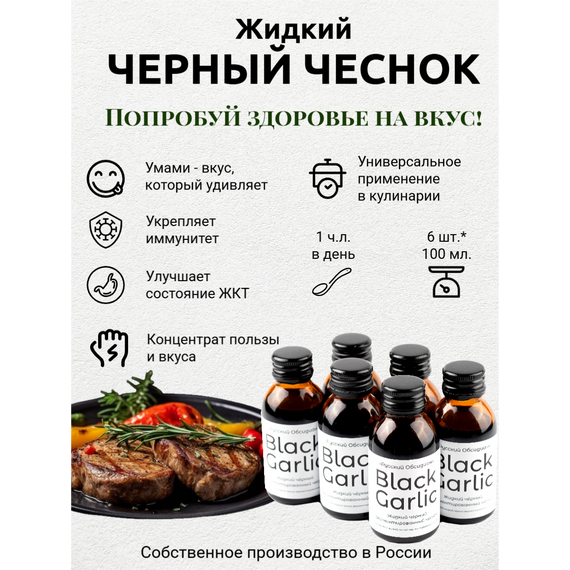 Жидкий чёрный ферментированный чеснок Black Garlic, шесть бутылок по 100 мл.