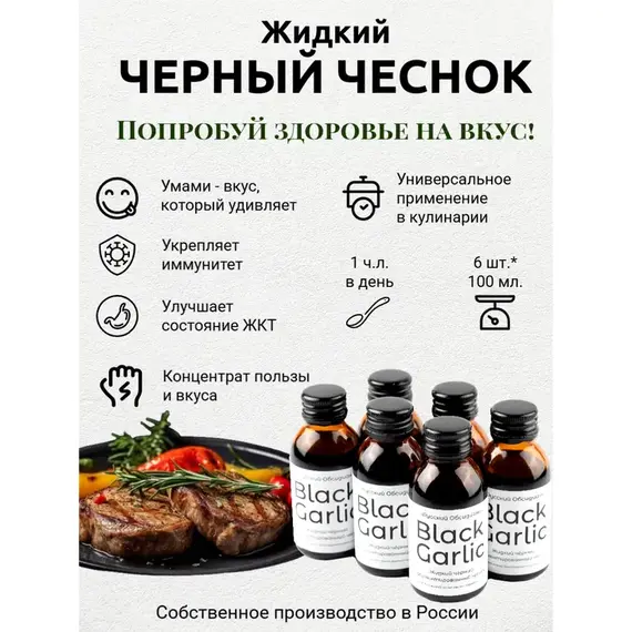 Жидкий чёрный ферментированный чеснок Black Garlic – это товар, не имеющий аналогов на рынке. Это натуральный концентрат, полученный путем естественной ферментации без добавления спиртов и химических растворителей. Идеальное решение для тех, кто ценит интенсивный вкус и максимальное удобство использования.