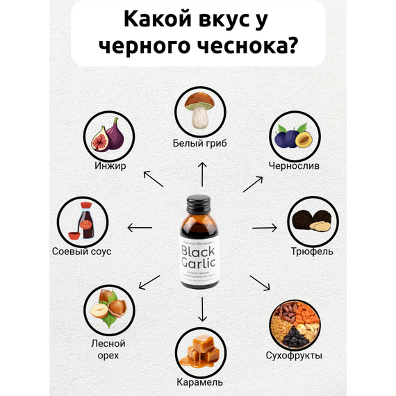 Жидкий чёрный ферментированный чеснок Black Garlic – это товар, не имеющий аналогов на рынке. Это натуральный концентрат, полученный путем естественной ферментации без добавления спиртов и химических растворителей. Идеальное решение для тех, кто ценит интенсивный вкус и максимальное удобство использования.