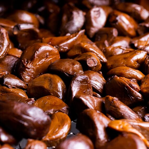 Разработка этого продукта заняла около года: цикл вызревания чёрного чеснока занимает 30-45 дней, ни один этап не допускает компромиссов по вкусу и качеству. В результате вы получаете премиальный продукт собственного производства с гарантией 100% натуральности и авторским контролем технологического процесса.