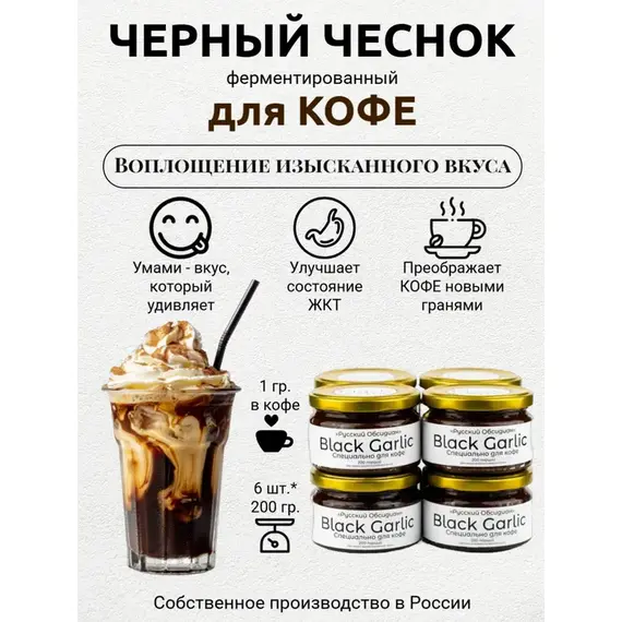 Попробуйте пасту Black Garlic для кофе от «Русский Обсидиан» и откройте для себя ваш любимый напиток с новой, удивительной стороны. В одной упаковке — 100 порций. Удобно, выгодно, интересно! 100% натуральный продукт собственного производства — гарантия качества и уникальности каждого вкуса.
