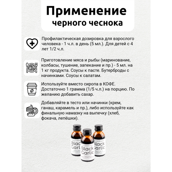 - Чёрный чеснок содержит в 2-3 раза больше антиоксидантов, чем обычный чеснок, что укрепляет иммунитет и препятствует старению.
