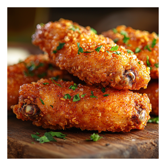 Куриные крылышки можно приготовить в панировке — как на сковороде, так и в духовке. Для панировки используют панировочные сухари, кукурузную муку или даже дроблёные орешки. Можно добавить специи, например, паприку или сушёный чеснок