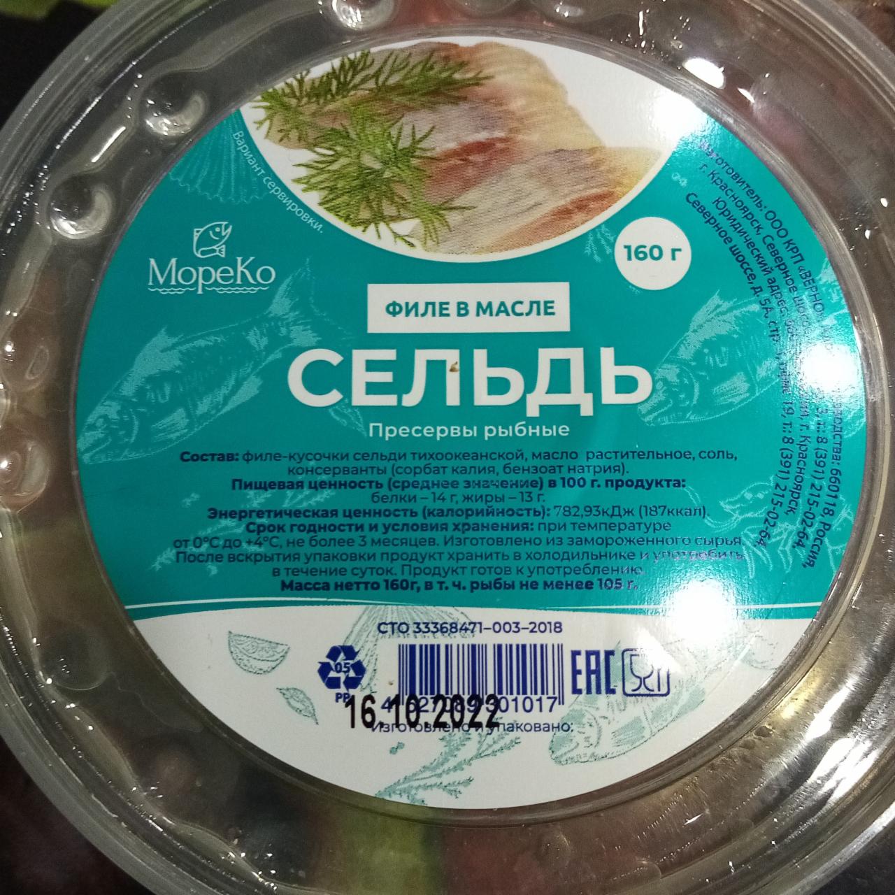 Пресервы Сельдь кусок с пряностями 500 г пл/б МореКо