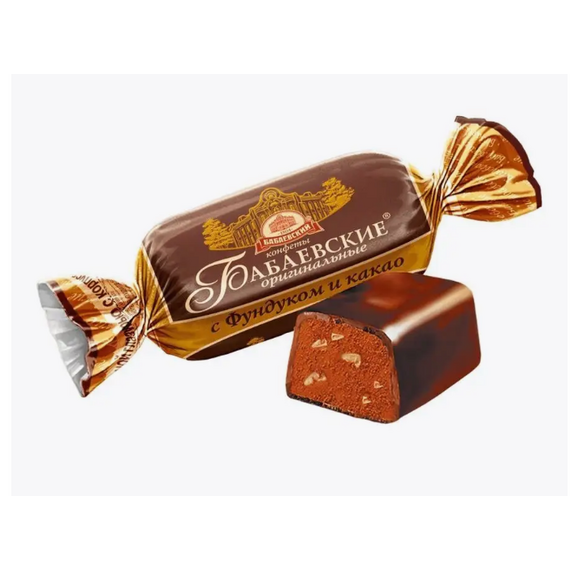Конфеты Бабаевские оригинальные с фундуком и какао - это настоящее удовольствие для любителей шоколада.Плотная помадно-халвичная начинка с добавлением какао и вкраплениями дробленого фундука, покрытая шоколадом.