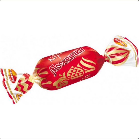 Легендарная конфета Москвичка фабрики Рот Фронт это хрустящая белая карамель, покрытая шоколадной глазурью. Внутри конфеты нежная помадная начинка с добавлением какао, сгущенного молока и терпким коньячным ароматом. Вкус, знакомый многим поколениям, сочетание твердой карамели и тающей мягкой начинки.