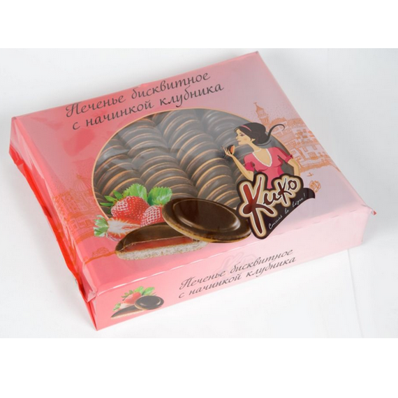 Печенье КиКо клубника в темной глазури 1,2кг