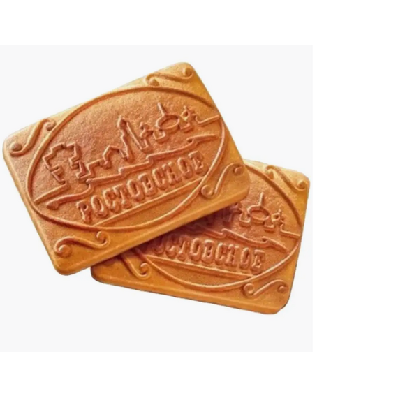 нежное рассыпчатое печенье с аккуратным фигурным краем, изготавливаемое по фирменной рецептуре.