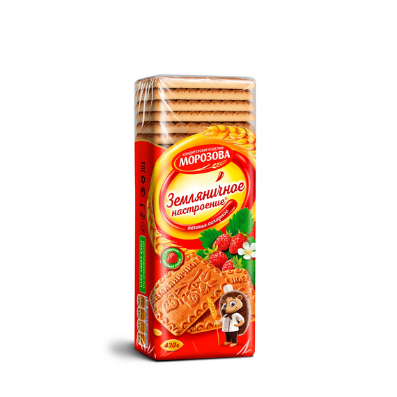 Тонкое печенье с фигурным краем, содержащее натуральное пюре из спелой клубники и земляники, которое придаёт ему нежный ягодный вкус и аромат.