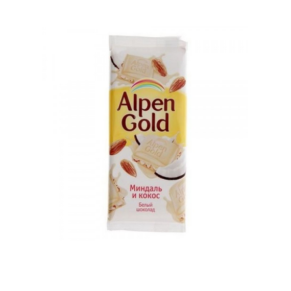 Шоколад Альпен Голд белый миндаль кокос 90г