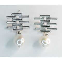 Серьги из гипоаллергенного ювелирного сплава серого цвета. Вставка- иск. барочный жемчуг ,цвет- белый. Застежка- пусет. Высота серег-2,5см, ширина-2см.