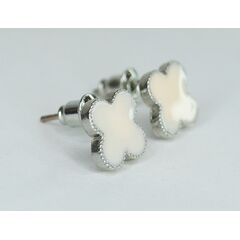 Серьги из гипоаллергенного ювелирного сплава серого цвета с покрытием эмалью белого цвета. Высота серег- 1,0см, ширина- 1,0см. Застежка- пусет.