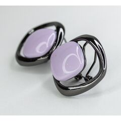 Серьги из гипоаллергенного ювелирного сплава черного цвета. Вставка- керамика , цвет- сиреневый. Высота серег-3см, ширина-3см. Итальянский замок (швенза-1,2см и застежка- клипса).