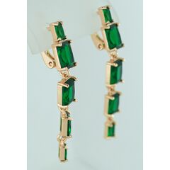 Серьги женские из гипоаллергенного ювелирного сплава желтого цвета. Вставка- циркон, цвет- зеленый. Высота серег-2,0см, ширина-1,5см. Застежка- английская (штифт-1,0см).