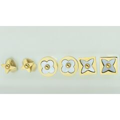 Серьги женские (в комплекте -3 пары) из гипоаллергенного ювелирного сплава желтого цвета. Вставка- перламутр белого цвета. Высота серег- 1,0см, ширина-1,0см. Застежка- пусет.