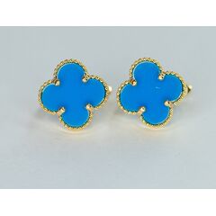 Серьги женские из гипоаллергенного ювелирного сплава желтого цвета. Вставка- улексит, цвет- синий. Высота серег-4,0см, ширина-2,5см. Итальянский замок ( штифт-1,2см и застежка -клипса).