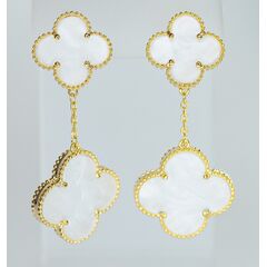 Серьги женские из гипоаллергенного ювелирного сплава желтого цвета. Вставка- перламутр, цвет- белый. Высота серег-5,0см, ширина-3,0см. Застежка- пусет.