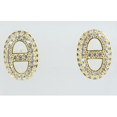 Серьги женские из гипоаллергенного ювелирного сплава желтого цвета. Вставка- ювелирное стекло белого цвета. Высота серег-3,0см, ширина-1,5см. Застежка-пусет.