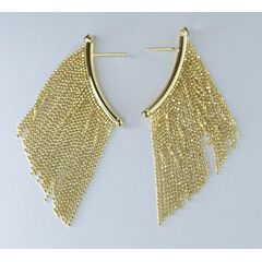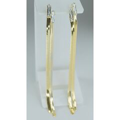 Серьги женские из гипоаллергенного ювелирного сплава желтого цвета. Без вставок. Представляют собой две скрепленные цепочки (плетение-плоский снейк), длиной-11,0см. Застежка- пусет.