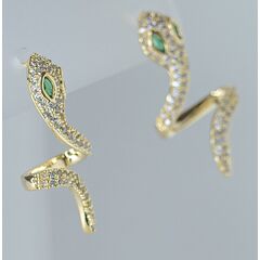 Серьги женские из гипоаллергенного ювелирного сплава желтого цвета. Вставка- циркон, цвет- белый и зеленый. Высота серег-2,0см, ширина-1,5см. Застежка- пусет.