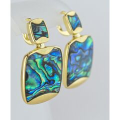 Серьги женские из гипоаллергенного ювелирного сплава желтого цвета. Вставка- перламутр радужного цвета. Высота серег-3,0см, ширина-2,0см. Итальянский замок (штифт-1,2см и застежка- клипса).