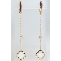 Серьги из гипоаллергенного ювелирного сплава желтого цвета. Вставка- фианит и перламутр белого цвета. Высота серег-5,0см.,подвесная часть серег (размер-1,2/1,2см). Английский замок (швенза-1,0см).