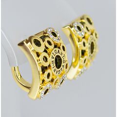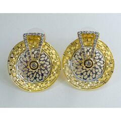 Серьги женские из гипоаллергенного ювелирного сплава желтого цвета. Вставка- цирконы белого цвета. Высота серег-4,0см, ширина-4,0см. Застежка- итальянская (штифт-1,2см).