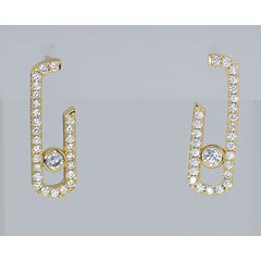 Серьги женские геометрической формы из гипоаллергенного ювелирного сплава желтого цвета. Вставка- ювелирное стекло белого цвета. Высота серег-4,0см, ширина-3,0см. Застежка- пусет.