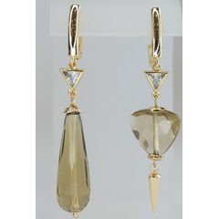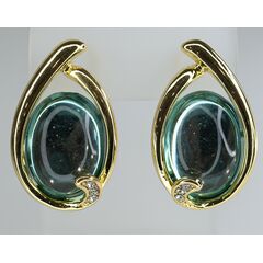Серьги женские из гипоаллергенного ювелирного сплава желтого цвета. Вставка- кварц зеленого цвета. Высота серег -3,0см, ширина -2,0см. Итальянский замок( штифт-1,2см и клипса).