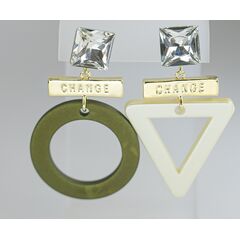 Моносерьги женские из гипоаллергенного ювелирного сплава желтого цвета и ювелирного пластика бежевого и болотного цвета. Вставка- кристалл белого цвета. Высота серег-3,5см, ширина-2,5см. Застежка- пусет.