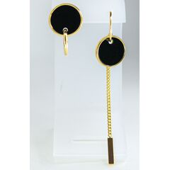 Серьги женские из гипоаллергенного ювелирного сплава желтого цвета. Вставка- халцедон серого и черного цвета. Высота серег-4,0см. Замок- английский (штифт-1,0см).